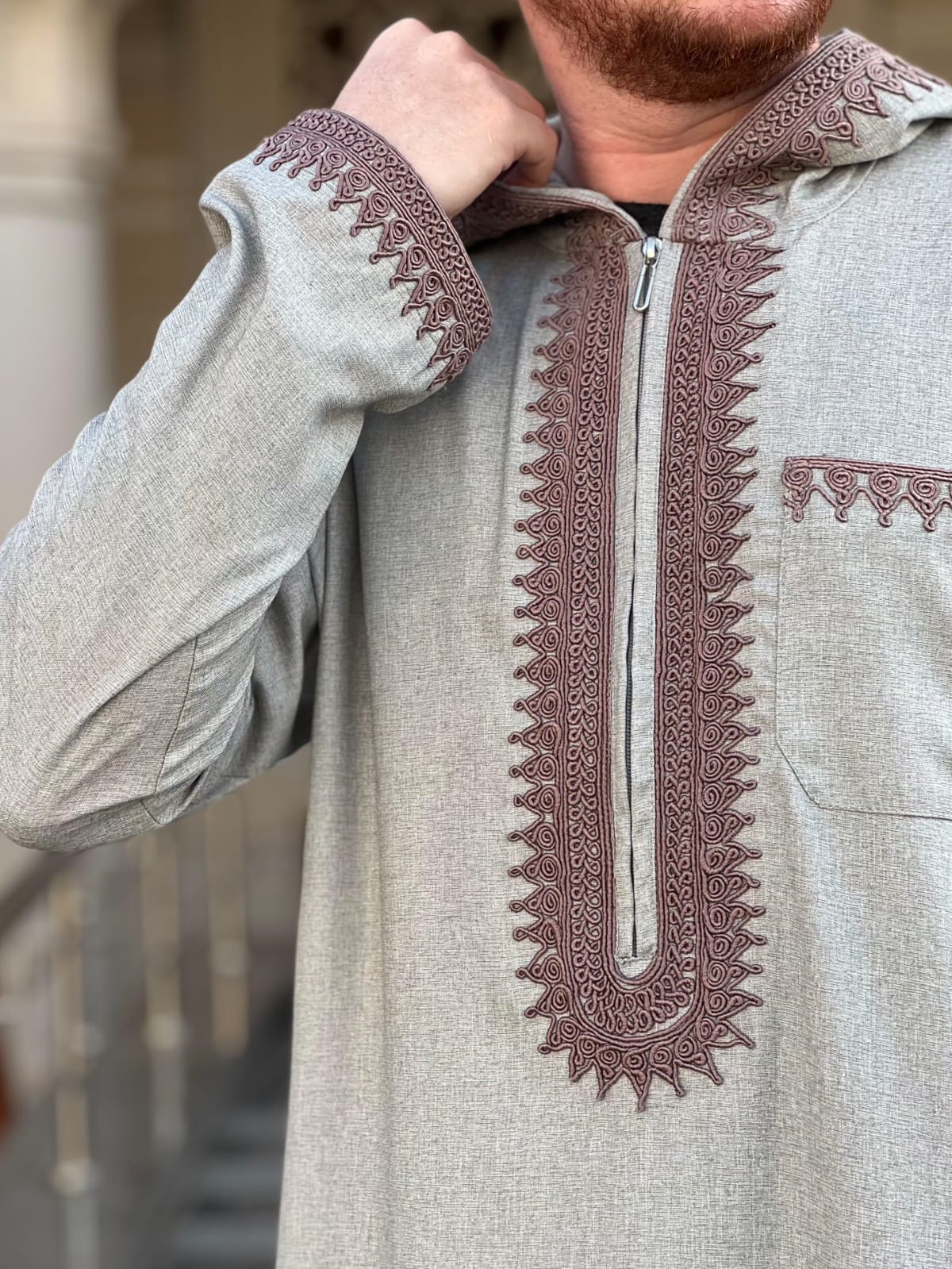 عِش أصالة التراث المغربي مع ثوب مهاجر بتصميمه المميز وتفاصيله الراقية. يتميز بالتطريز اليدوي الكامل الذي يعكس دقة الصنعة وحرفية عالية في كل خيط.