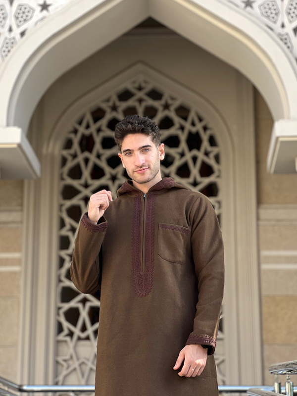 عباءة مهاجر الجوخ الشتوية باللون البني