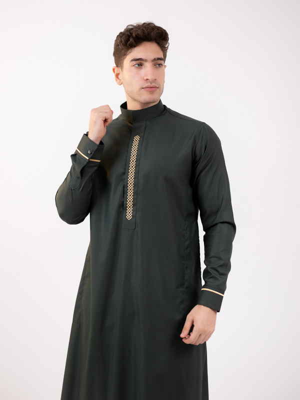 صُمّم بعناية ليعكس توازناً فريداً بين الأصالة واللمسة العصرية. يتميز بتطريز فاخر باللون الذهبي يمنح إطلالتك حضوراً مميزاً.